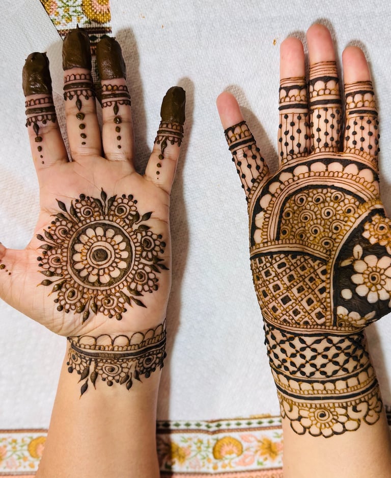 Handcrafted henna designs blending tradition with modern elegance.